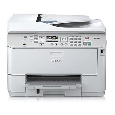 You can easily connect and share the WorkForce Pro WP-4533 Network Multifunction Wireless Color Printer with others in your workgroup using a wireless or wired network. Plus, print remotely from anywhere, including popular mobile devices. Thanks to EPSON Connect you can also print remotely from any device that can e-mail and it works with Apple AirPrint and Google Cloud Print. Combine this flexibility with scanning, copying and faxing capabilities, and you have the perfect workgroup all-in-one. The WorkForce Pro produces one-sided ISO print speeds of 16 ISO ppm in black and 11 ISO ppm in color as well as wo-sided ISO print speeds of 9.2 ISO ppm in black and 7.1 ISO ppm in color. These speeds do not sacrifice in quality. Laser-sharp text and photo-quality prints are created at 4800 x 1200 dpi resolutions for professional results. Plus, it copier features fit to page, automatic reduction and enlargement (25 400percent) and adjustable copy density capabilities while is scanner can produce resolutions up to 9600 x 9600 dpi interpolated. Its 33.6Kbps fax machine has an 180 page memory, 60 speed dials and supports PC Fax, making the WP-4533 a well-rounded office machine. Paper heandling is also efficient. The WorForce Pro comes with automatic two-sided printing. Reload paper less often thanks to its 330-sheet capacity. It includes an 80-sheet rear-feed tray for envelopes, labels and specialty media and can hold up to 580 sheets total with an optional second paper tray. Its 25,000-page maximum monthly duty cycle and large ink cartridge capacity makes this one of the most durable and cost-saving inkjet printers on the market today.Epson WorkForce Pro WP-4533 Inkjet Multifunction Printer - Color - Plain Paper Print - Desktop - Printer, Copier, Scanner, Fax - 16 ppm Mono/11 ppm Color Print (ISO) - 4800 x 1200 dpi Print LCD - 2400 dpi Optical Scan - Automatic Duplex Print - 330 sheets intended for Special offers